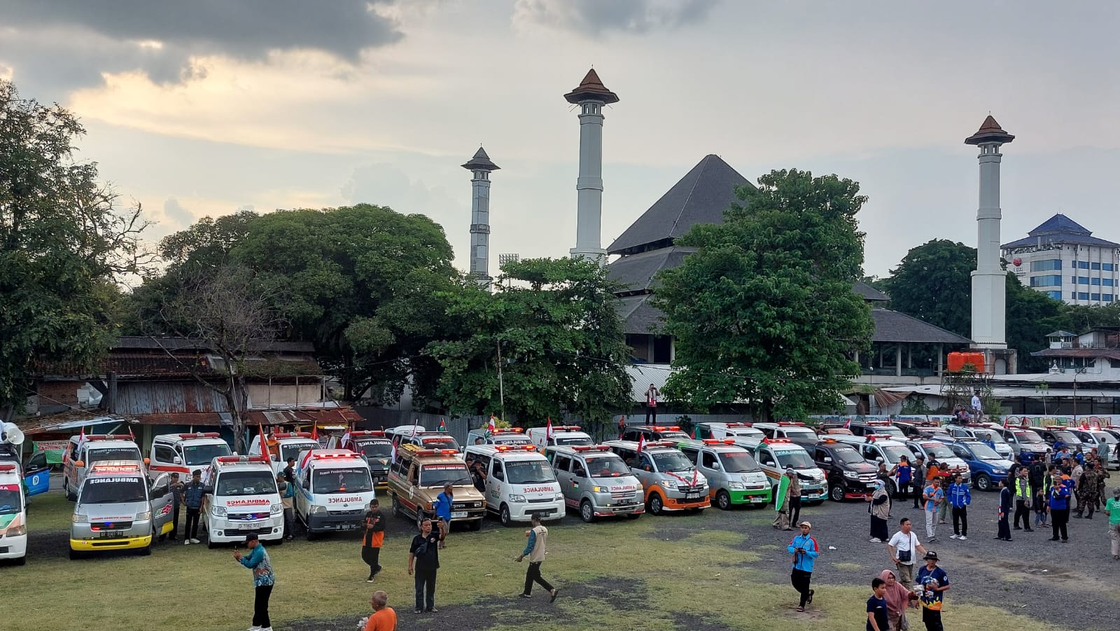 “Total ada kurang lebih 100 ambulans yang ikut dapat misi kemanusiaan ini. Rute yang dilalui dari Yogyakarta berhenti sejanak di Masjid Al Aqsha Klaten untuk melakukan orasi dan menyalakan sirine selama 1 menit terus berjalan. Berhenti di Goro Asssalam kemudian finis di Taman Sri Wedari Solo,” pungkasnya. (Reporter Ranu Muda)
