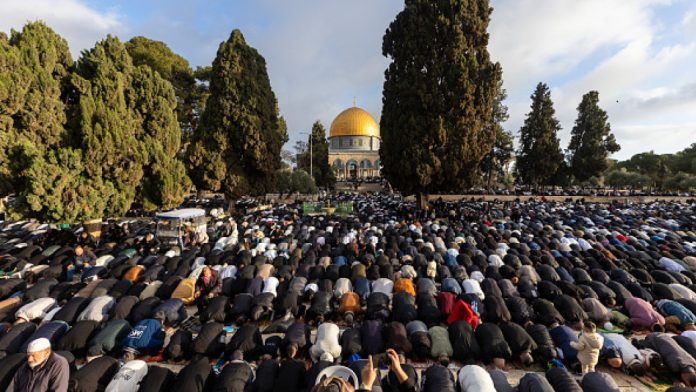 Meskipun dengan kehadiran besar pasukan Israel dan pembatasan di pos-pos pemeriksaan, ribuan orang tetap berbondong-bondong menuju halaman masjid.