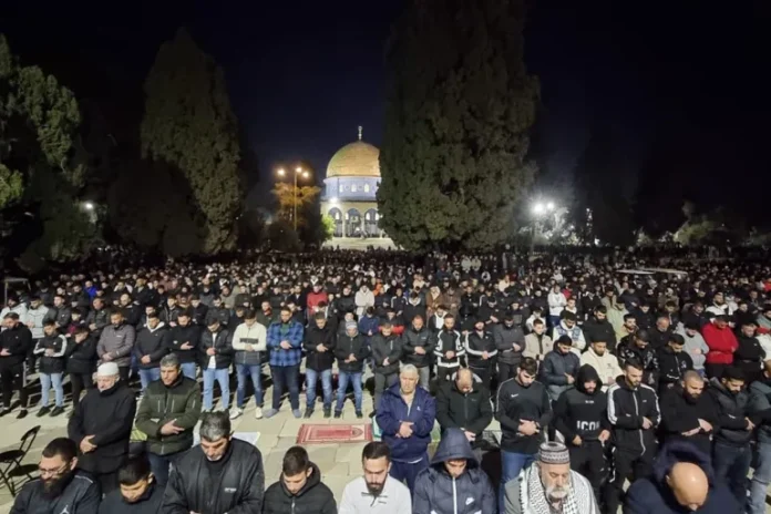 “Lebih dari 75 ribu jemaah melaksanakan shalat Isya dan Tarawih di Masjid Al-Aqsa,” menurut Departemen Wakaf Islam dalam pernyataan singkat.