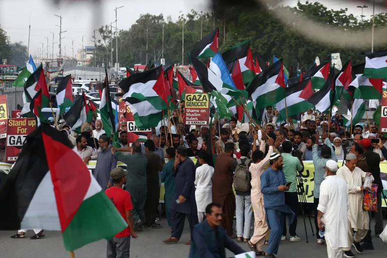 Di Karachi, ratusan orang turun ke jalan mengibarkan bendera Palestina dan mengutuk langkah Israel menghadang armada.