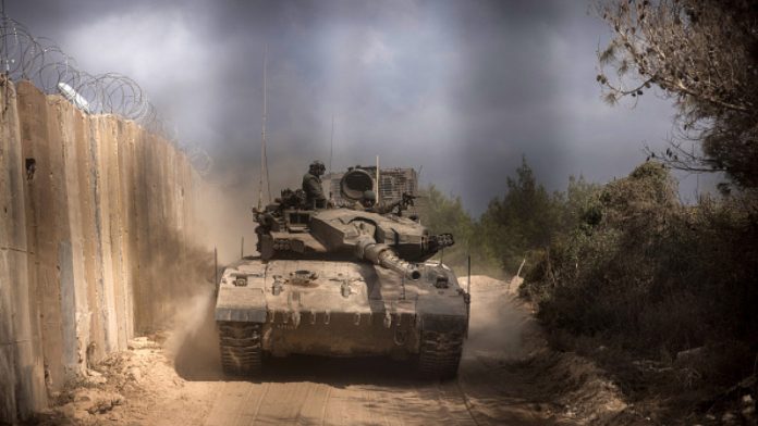 Tank Merkava Israel, yang biasanya berisi hingga empat tentara, dilengkapi dengan sistem pertahanan anti-rudal ‘Trophy’ yang dapat menghancurkan proyektil musuh.