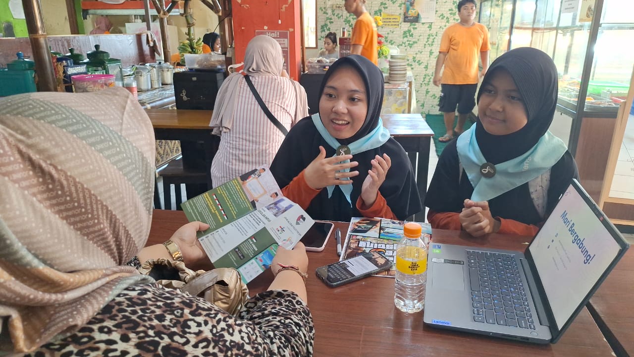 Dengan semangat tinggi, para santri menjelaskan konsep “Jogja Love Palestine” dan mekanisme aplikasi kepada unit usaha yang mereka kunjungi, mendorong mereka untuk menandatangani kontrak kerjasama.