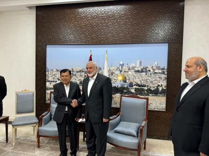 “Ini memenuhi harapan agar mengirimkan delegasi Indonesia ke sana dan kami diundang meghadiri pemakaman almarhum Ismail Haniyah,” kata JK.