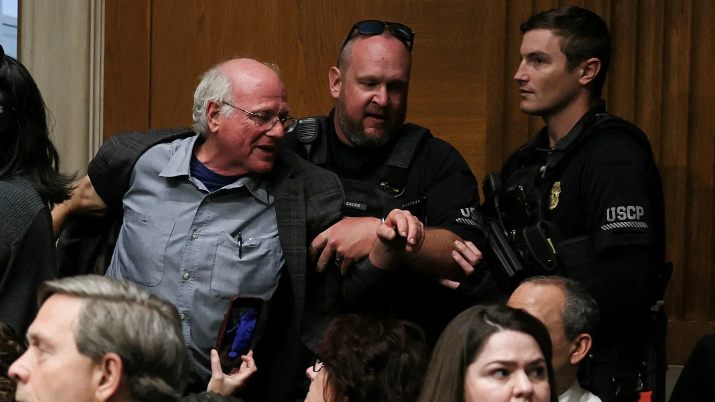 Seorang petugas polisi Capitol Hill menarik lengan Cohen dengan paksa hingga pria berusia 74 tahun itu hampir kehilangan keseimbangan, lalu mengeluarkannya dari sidang Senat.