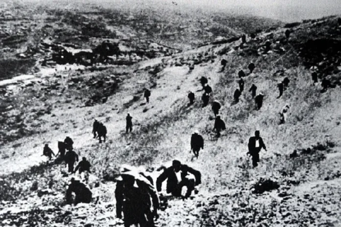 Setelah serangkaian pertempuran sengit, desa itu dihancurkan hampir sepenuhnya—hanya menyisakan satu rumah di puncak bukit.
