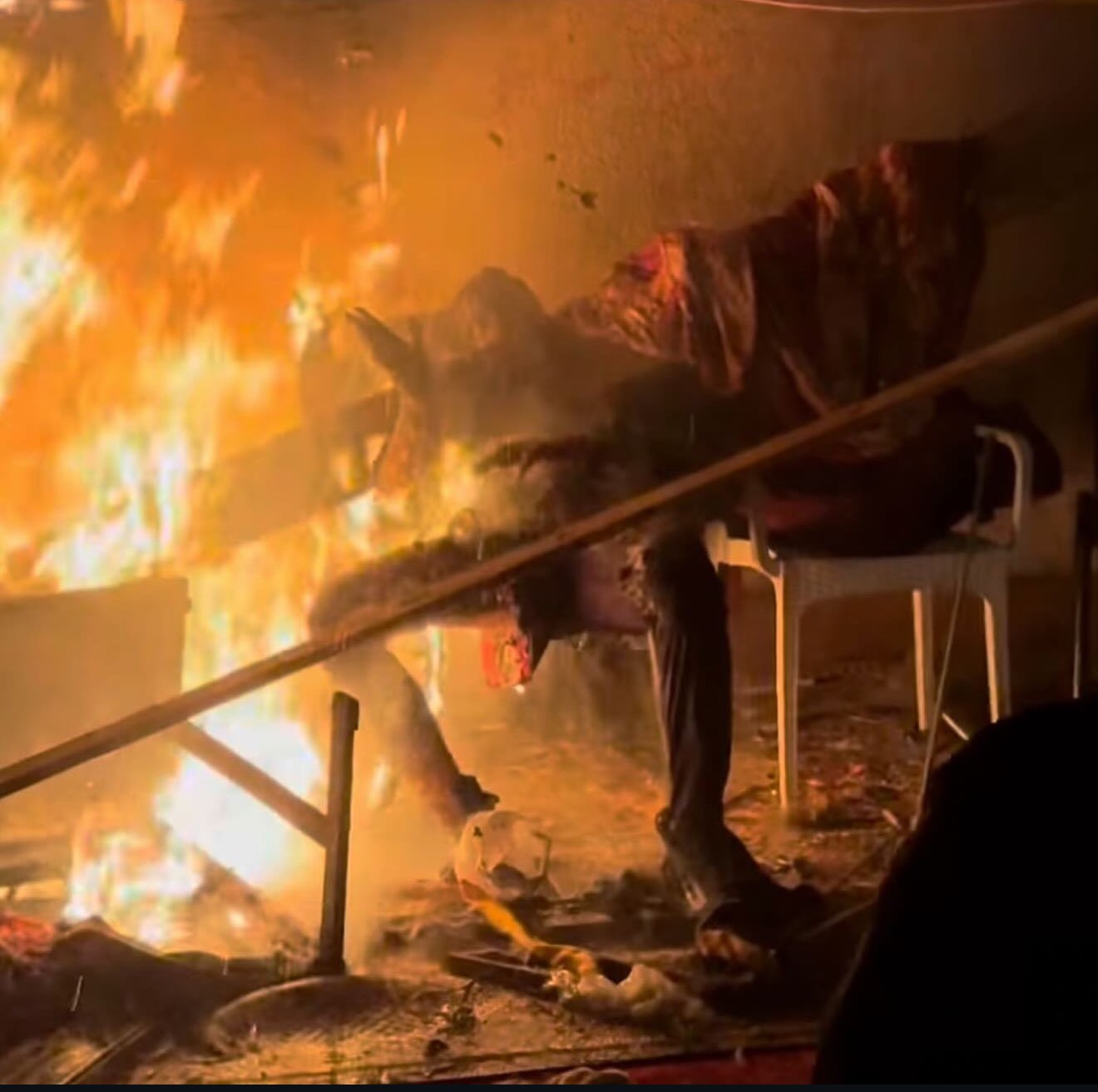 Beberapa rekaman dari media sosial yang belum terverifikasi juga memperlihatkan tenda yang terbakar habis, bersama dengan perabot dan peralatan yang ada di dalamnya. Foto-foto yang beredar menunjukkan seorang jurnalis terbakar, sementara orang lain berusaha menyelamatkannya.
