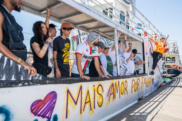 Kapal Hanzala kembali melanjutkan pelayarannya menuju Jalur Gaza setelah sebelumnya sempat hilang kontak selama hampir dua jam pada Kamis malam (25/7) waktu setempat.