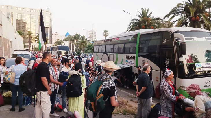 Rombongan ini terdiri atas lebih dari 1.500 simpatisan dari Tunisia dan Aljazair, yang menumpang 20 bus dan sekitar 350 kendaraan pribadi.